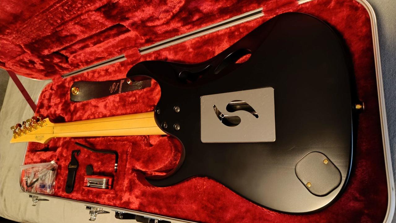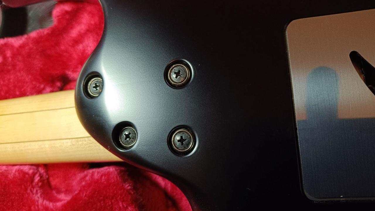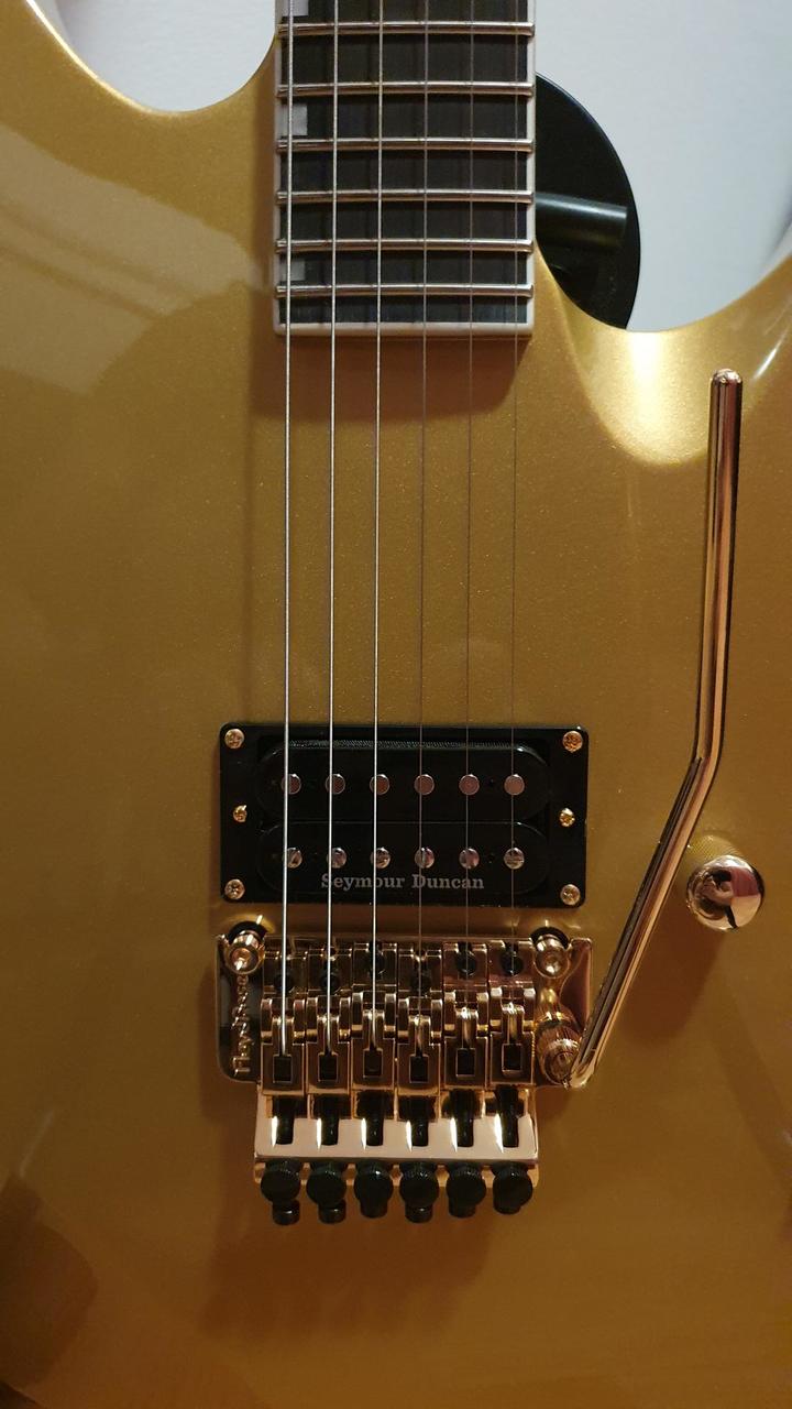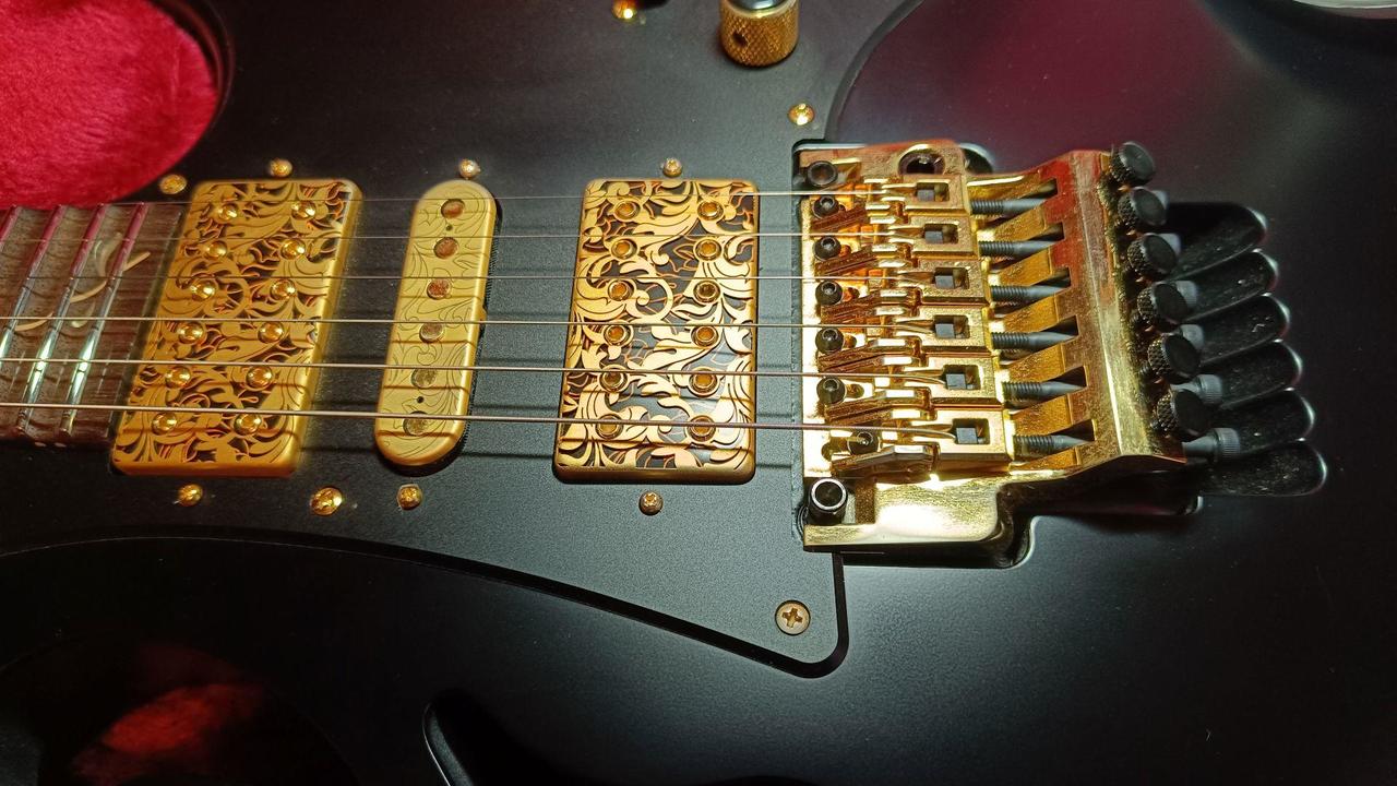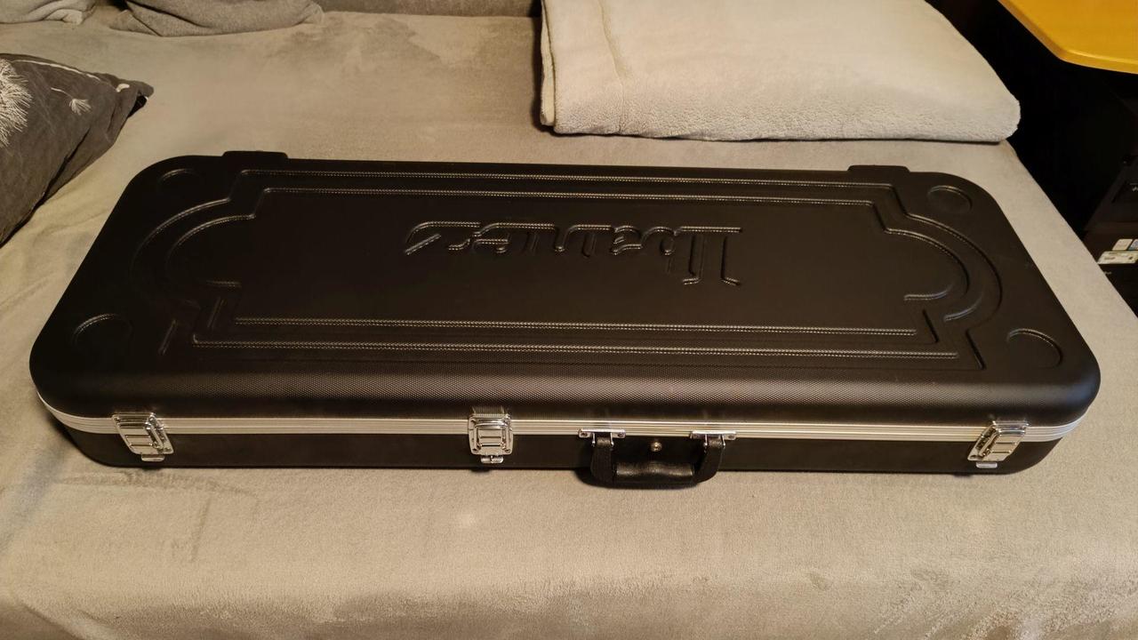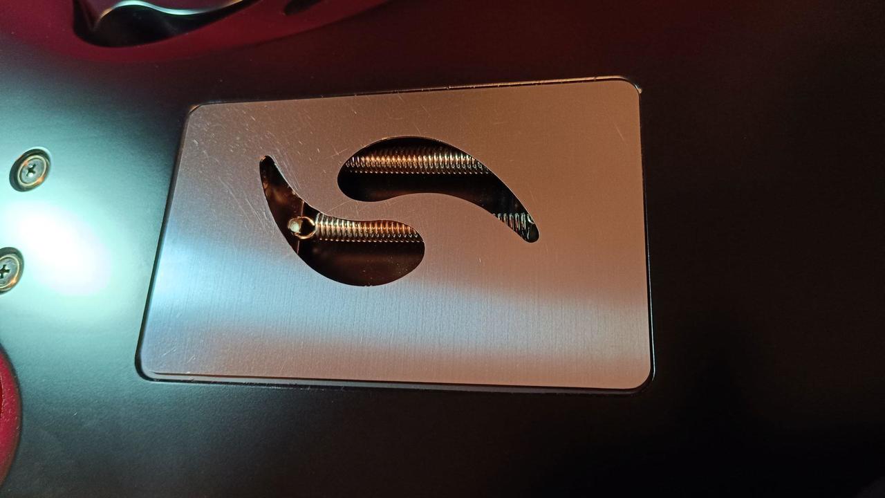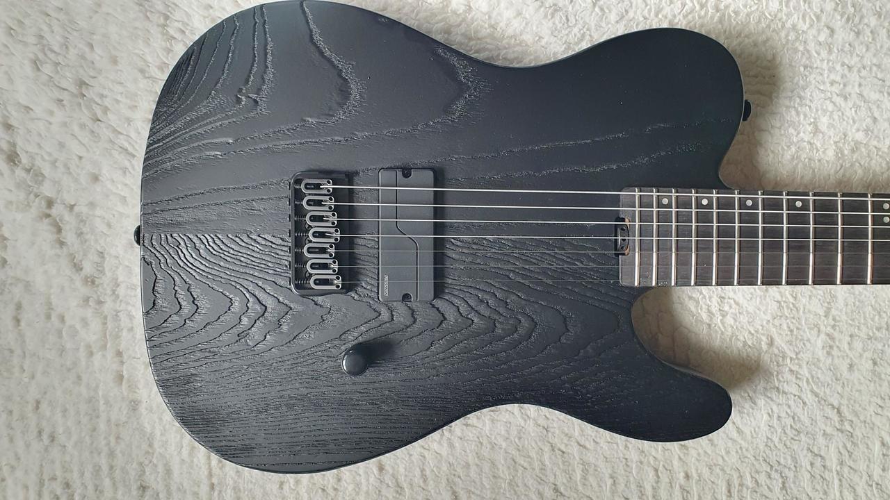Na zakázku zhotovená odlehčená kytara - hmotnost jen 2,5 kg, takže šetří záda. I přes malé tělo má výraznou rezonanci a sustain, za což může povedený krk a masivní licenční tremolo Floyd Rose. Nasucho hraje stejně hlasitě jako běžný Strat nebo Tele. Hliníkové lišty jsou připraveny k montáži nějakého bateriového minizesilovače - jak je to u kytary Bigbeat z šedesátých let - nebo jdou sundat a provozovat např. s bezdrátem. Komu by vadila absence potenciometru hlasitosti, může namontovat nějakou efektovou krabičku. Menzura krku je klasická jako u Stratocasteru, čili nezmenšená. Preferuji osobní odběr v Brně - kdo přijede, tomu ještě seřídím kytaru... :-)
