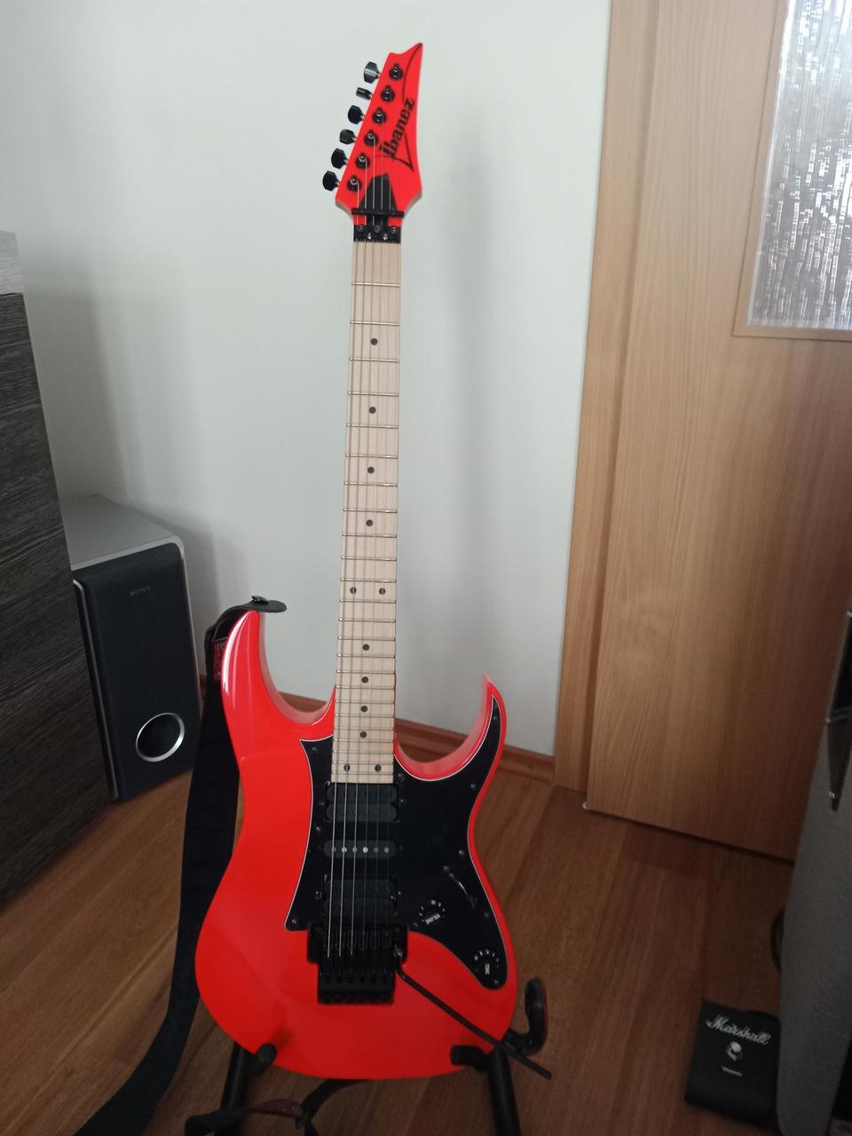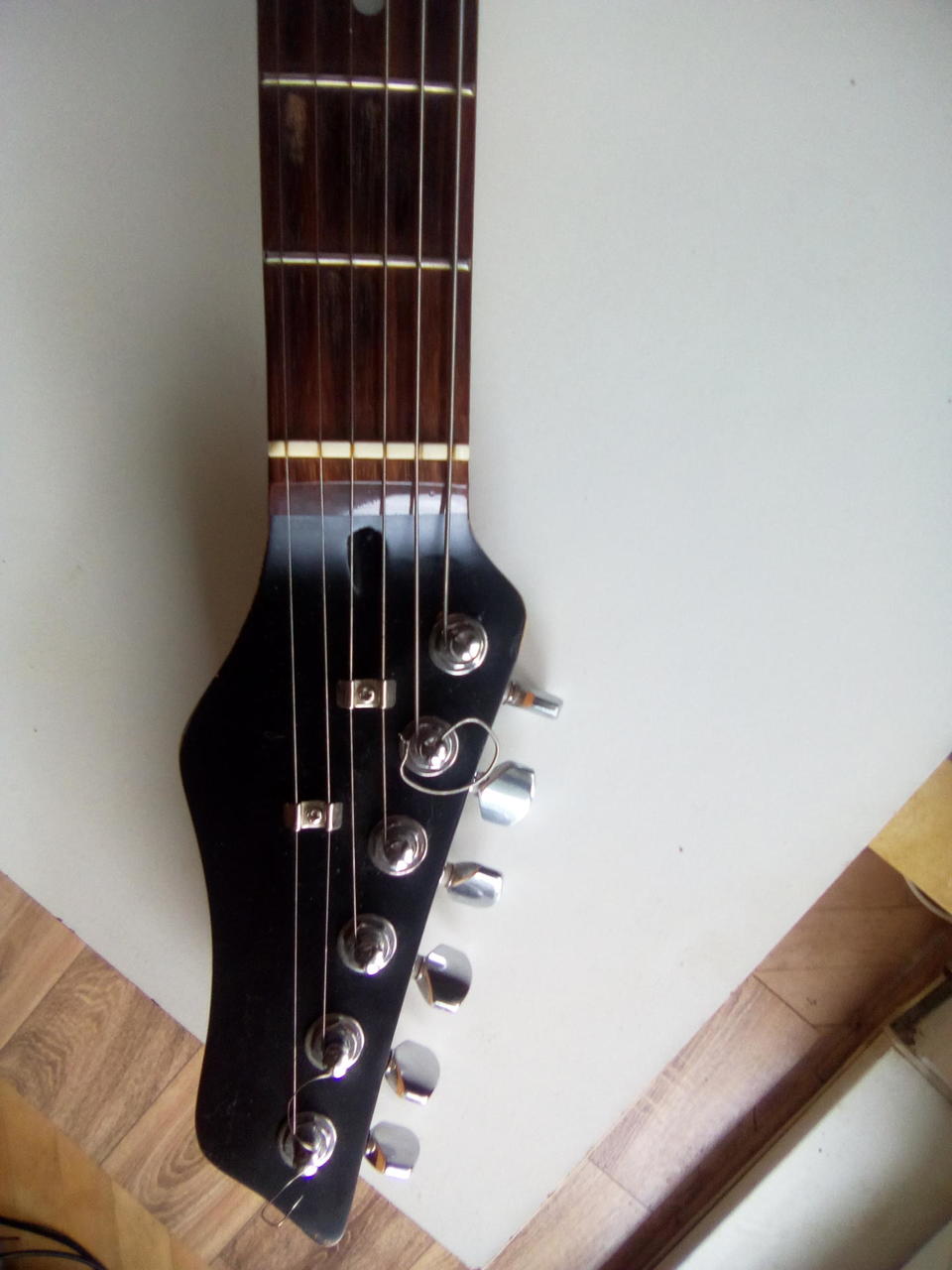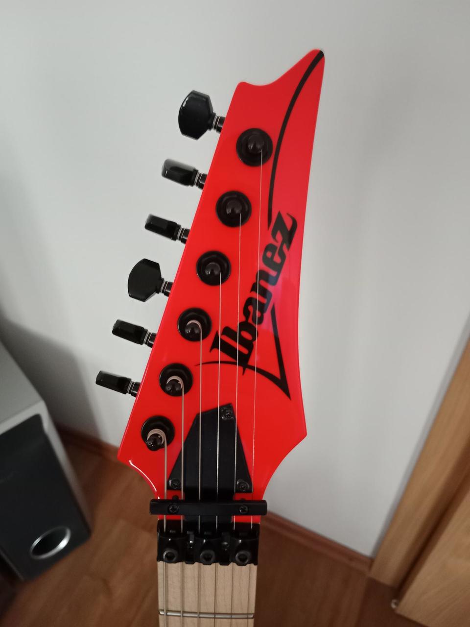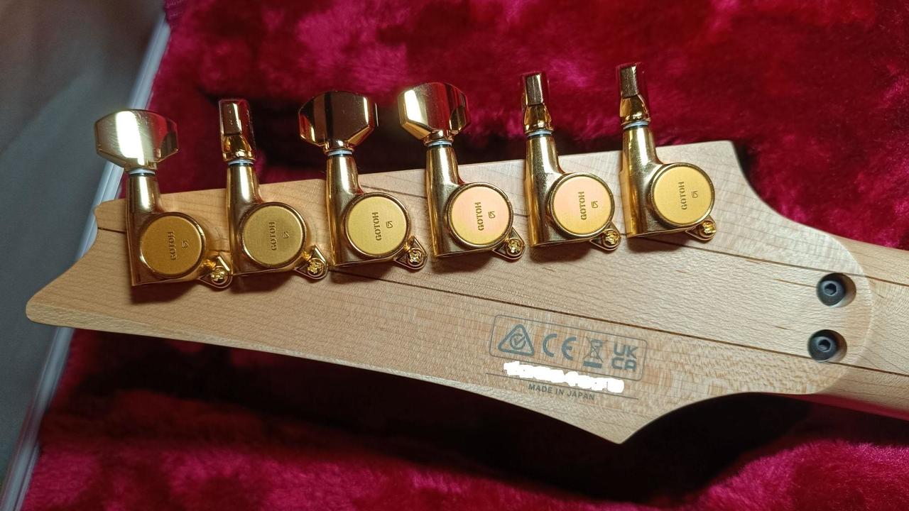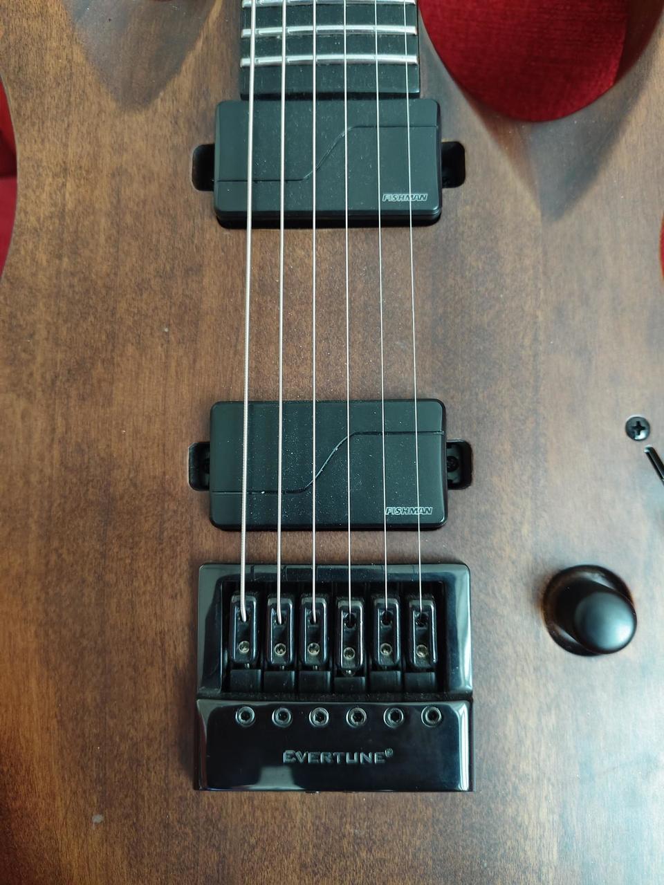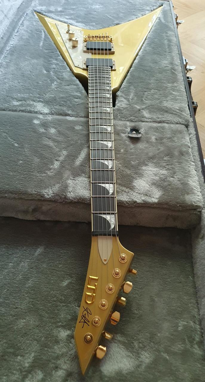 Na zakázku zhotovená odlehčená kytara - hmotnost jen 2,5 kg, takže šetří záda. I přes malé tělo má výraznou rezonanci a sustain, za což může povedený krk a masivní licenční tremolo Floyd Rose. Nasucho hraje stejně hlasitě jako běžný Strat nebo Tele. Hliníkové lišty jsou připraveny k montáži nějakého bateriového minizesilovače - jak je to u kytary Bigbeat z šedesátých let - nebo jdou sundat a provozovat např. s bezdrátem. Komu by vadila absence potenciometru hlasitosti, může namontovat nějakou efektovou krabičku. Menzura krku je klasická jako u Stratocasteru, čili nezmenšená. Preferuji osobní odběr v Brně - kdo přijede, tomu ještě seřídím kytaru... :-)