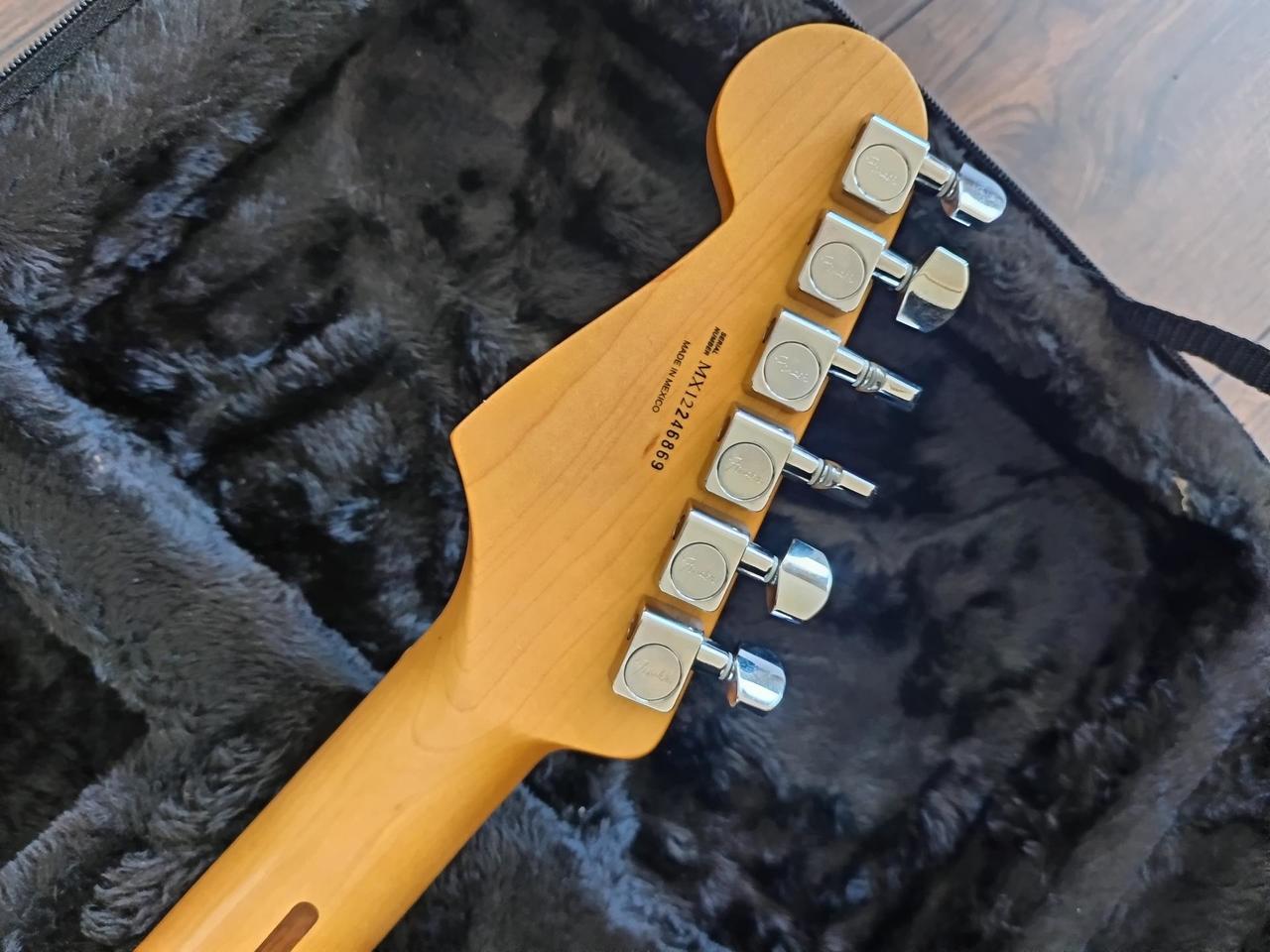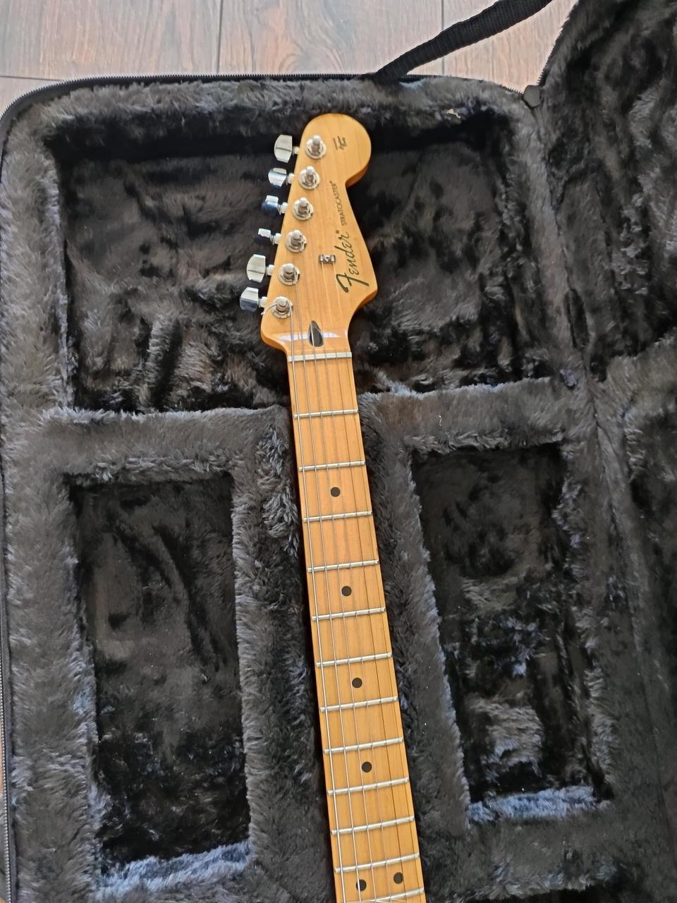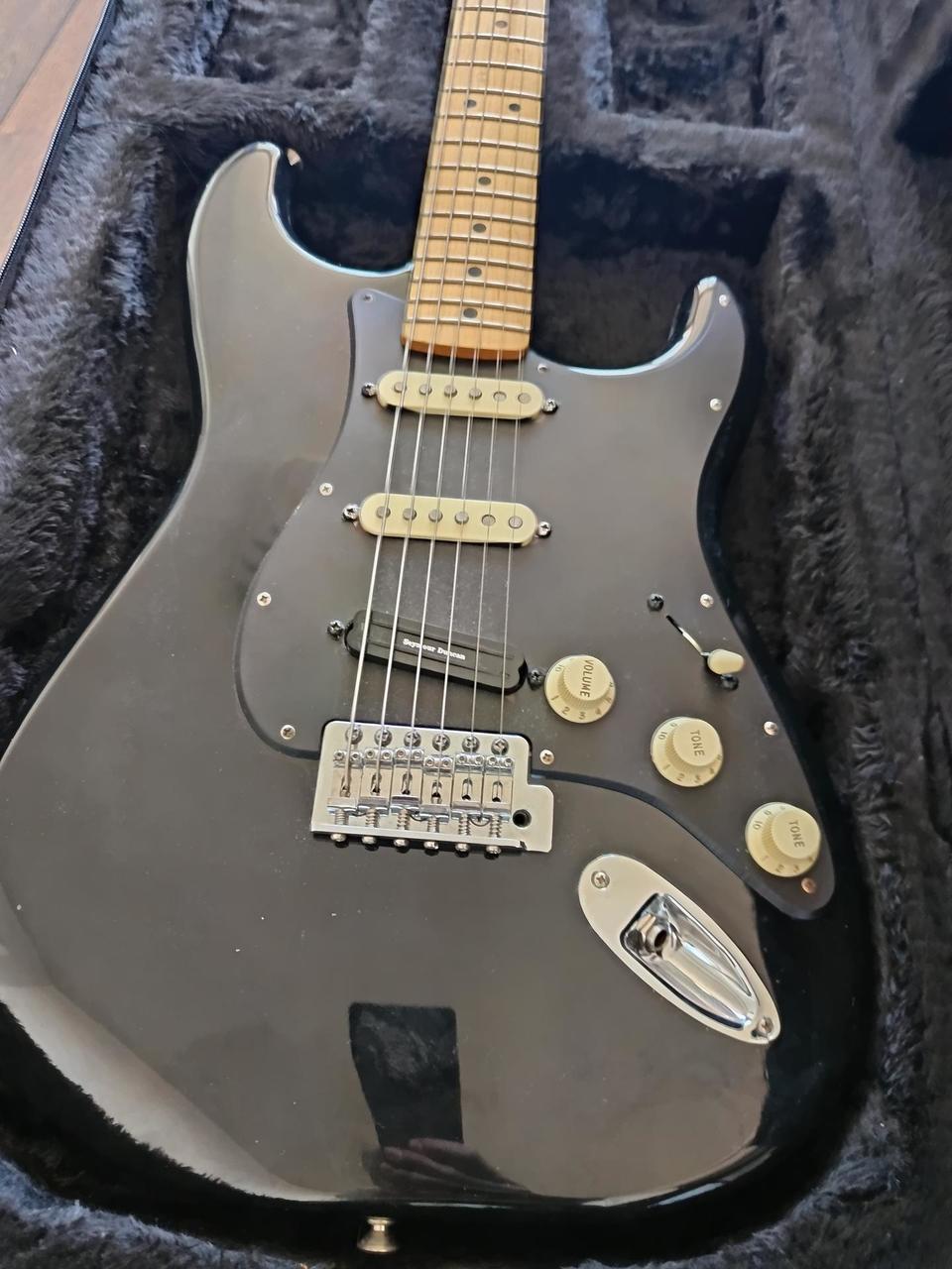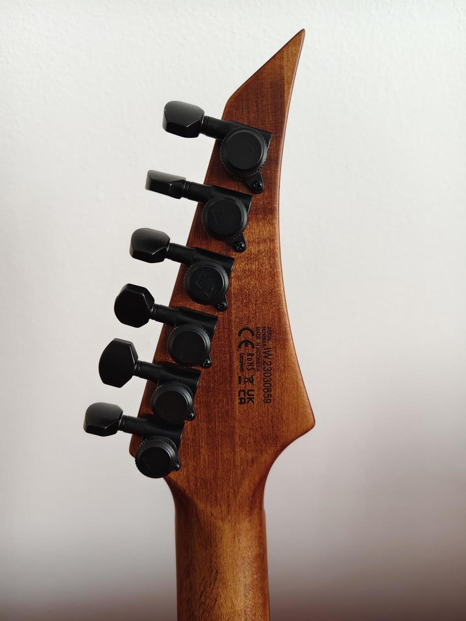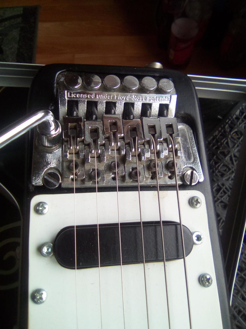 Na zakázku zhotovená odlehčená kytara - hmotnost jen 2,5 kg, takže šetří záda. I přes malé tělo má výraznou rezonanci a sustain, za což může povedený krk a masivní licenční tremolo Floyd Rose. Nasucho hraje stejně hlasitě jako běžný Strat nebo Tele. Hliníkové lišty jsou připraveny k montáži nějakého bateriového minizesilovače - jak je to u kytary Bigbeat z šedesátých let - nebo jdou sundat a provozovat např. s bezdrátem. Komu by vadila absence potenciometru hlasitosti, může namontovat nějakou efektovou krabičku. Menzura krku je klasická jako u Stratocasteru, čili nezmenšená. Preferuji osobní odběr v Brně - kdo přijede, tomu ještě seřídím kytaru... :-)
