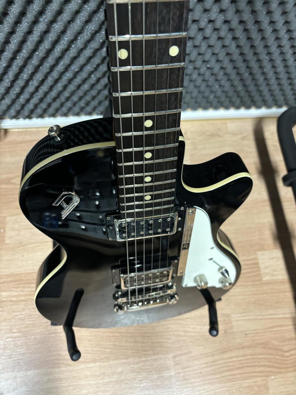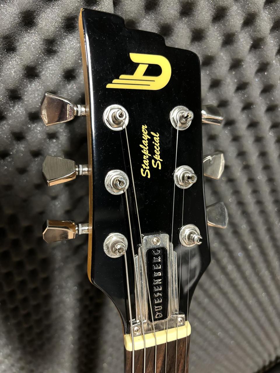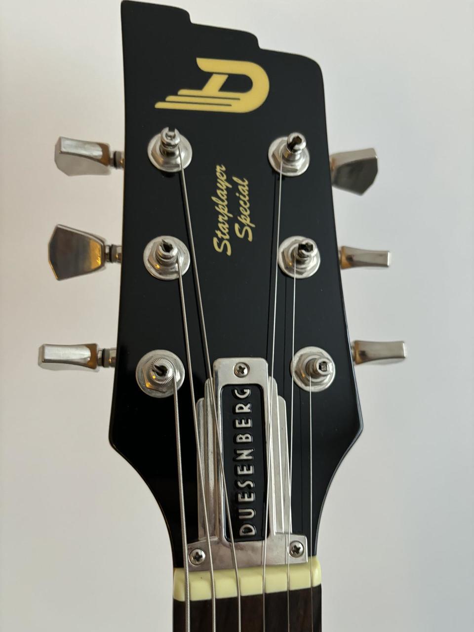 Predám Duesenberg Starplayer Special Black. Top stav, takmer nehraný nástroj - slúžil ako backup gear. Telo - masív jelša, s povrchovým polyuretánovým lakom, javorový krk (profil D), palisandrový hmatník, 22 jumbo pražcov, snímače - krk: Duesenberg Grand Vintage Humbucker, kobylka: Duesenberg Crunch Bucker, ovládanie: 3-polohový prepínač blade, Volume, Tone (Multi-Tone), točením Multi-Tone možno dosiahnuť zvuk nielen humbuckerov, ale aj krásny single coil zvuk, so zachovaním frekvencií. Menzúra: 648 mm / 25,5”, farba: Vintage Black, Hardware - Ladiace mechaniky: Duesenberg Z-Tuners „Tulip”, Kobylka: Duesenberg Stoptail Tune-o-matic, háčik na pas: Duesenberg standard, Struny: nové Elixir Optiweb Hybrid (009-046). Je to výnimočný nástroj s vynikajúcou stabilitou ladenia, prvotriednou kvalitou vybraných materiálov, perfektnými zvukovými vlastnosťami a variabilitou. Súčasťou je pevný originálny kufor Duesenberg.