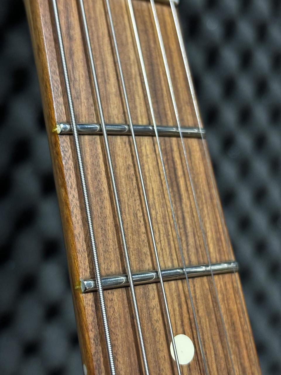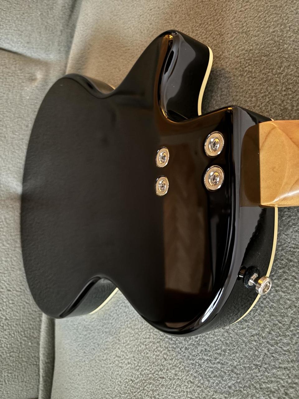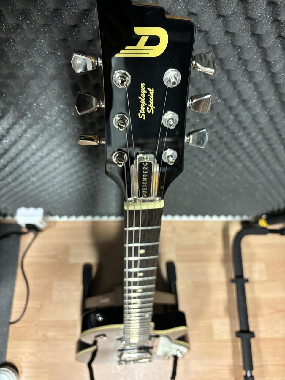 Predám Duesenberg Starplayer Special Black. Top stav, takmer nehraný nástroj - slúžil ako backup gear. Telo - masív jelša, s povrchovým polyuretánovým lakom, javorový krk (profil D), palisandrový hmatník, 22 jumbo pražcov, snímače - krk: Duesenberg Grand Vintage Humbucker, kobylka: Duesenberg Crunch Bucker, ovládanie: 3-polohový prepínač blade, Volume, Tone (Multi-Tone), točením Multi-Tone možno dosiahnuť zvuk nielen humbuckerov, ale aj krásny single coil zvuk, so zachovaním frekvencií. Menzúra: 648 mm / 25,5”, farba: Vintage Black, Hardware - Ladiace mechaniky: Duesenberg Z-Tuners „Tulip”, Kobylka: Duesenberg Stoptail Tune-o-matic, háčik na pas: Duesenberg standard, Struny: nové Elixir Optiweb Hybrid (009-046). Je to výnimočný nástroj s vynikajúcou stabilitou ladenia, prvotriednou kvalitou vybraných materiálov, perfektnými zvukovými vlastnosťami a variabilitou. Súčasťou je pevný originálny kufor Duesenberg.