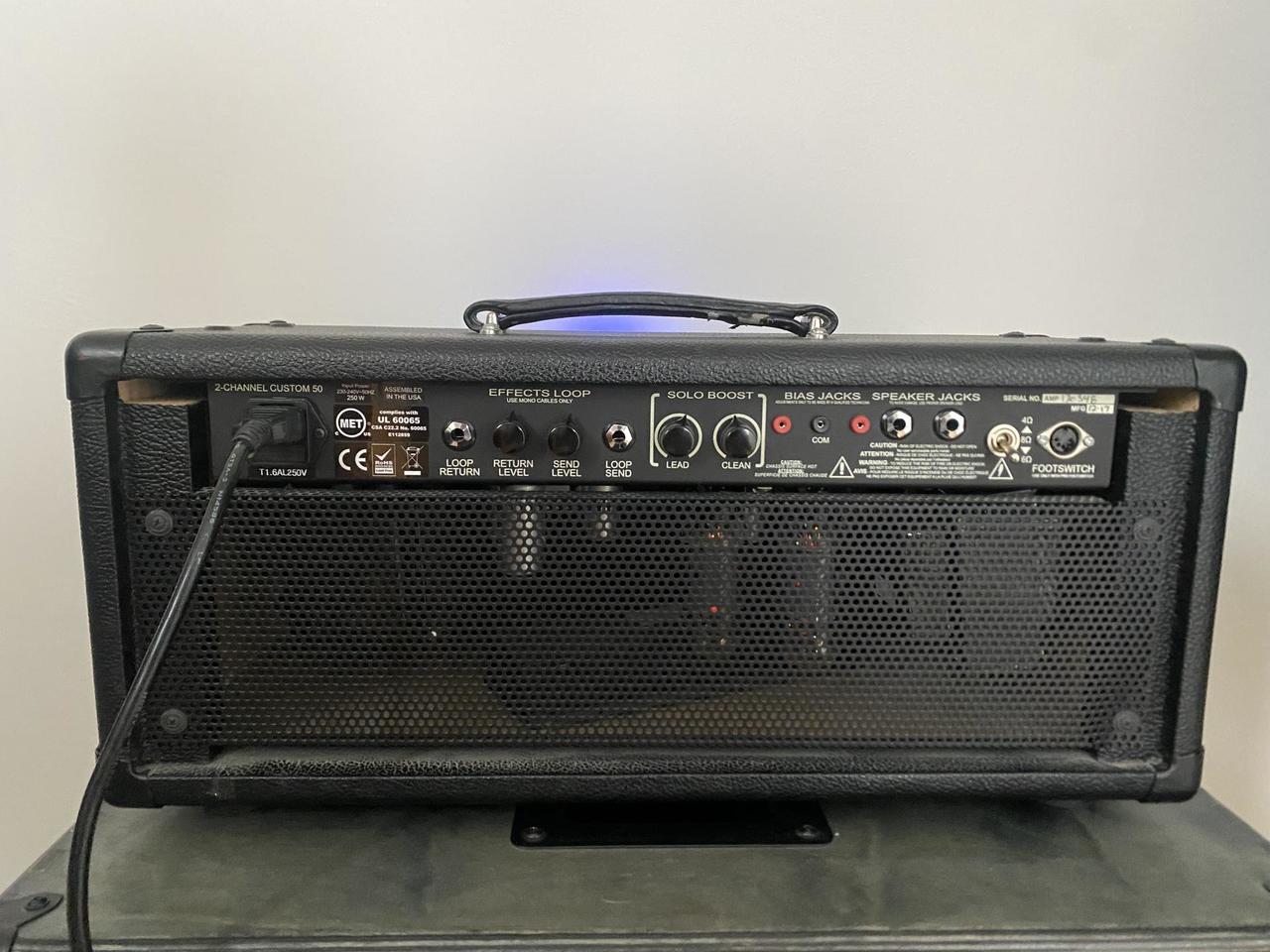 Celolampový 50-wattový zesilovač pro elektrickou kytaru ze série Custom, který nabízí několik funkcí pro ultimátní všestrannost a muzikálnost. Každý z jeho dvou kanálů (lead/clean) je vybaven ovladači volume, treble, middle, bass a master volume, plus přepínačem bright. Kanál lead kromě toho nabízí také spínač mid-shift, který při zatlačení vyzdvihuje zvuk středních frekvencí a při povytažení zesiluje zvuk tohoto kanálu. K dispozici je i push/pull ovladač presence pro zvýraznění hloubky celkového zvuku, a push/pull ovladač reverb. Pokud je páčka ovladače reverb zatlačena, tento efekt funguje pouze pro kanál clean, což umožňuje bezproblémové přepínání mezi kanálem lead bez reverbu a kanálem clean s aktivovaným reverbem pomocí přibaleného nožního spínače. Tří-tlačítkový LED nožní spínač kromě toho nabízí funkce solo boost a výběr kanálu. Zesilovač dále nabízí efektovou smyčku a umožňuje postupný přechod z čistého zvuku do zesíleného bez ztráty artikulace. Je vybaven jednou 6L6 lampou a šesti lampami na předzesilovači - třemi 12AX7, dvěma 12AT7 a jednou 12DW7.