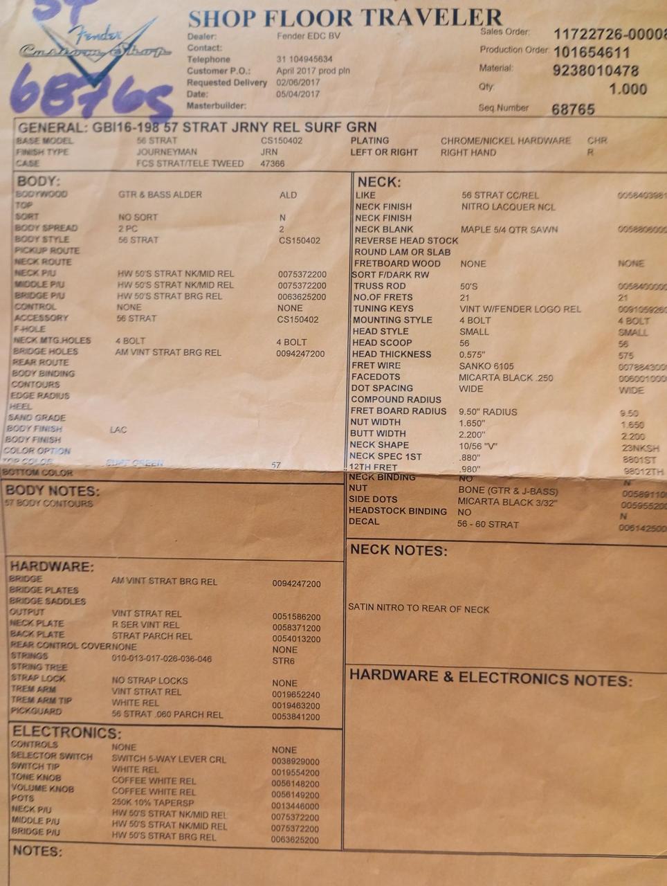 Fender stratocaster 57 relic Custom shop