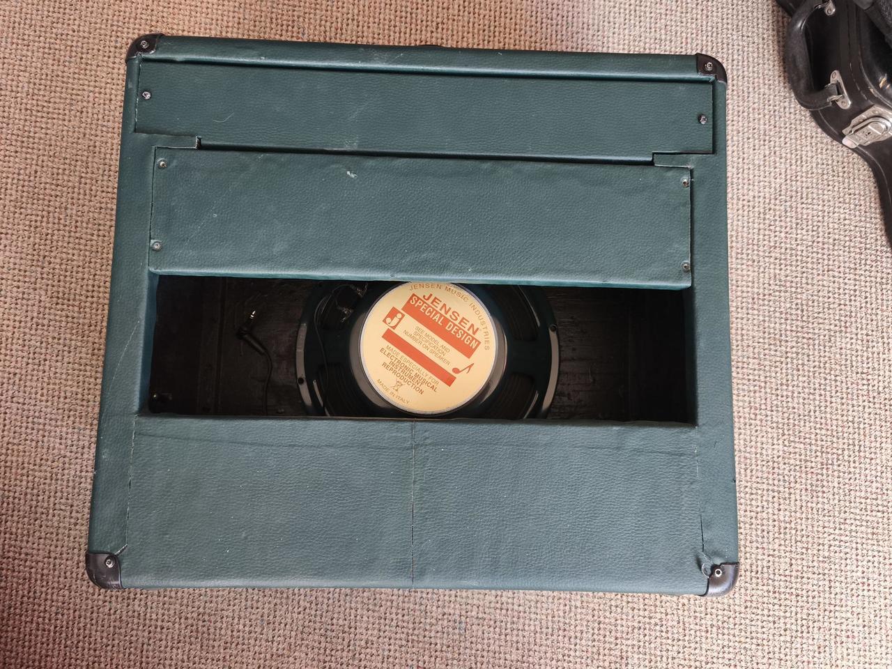 Je to reprobedna z komba Marshall osazená repro Jensen používaný ve Twinech. Ideální jako externí repro pro malé aparáty.