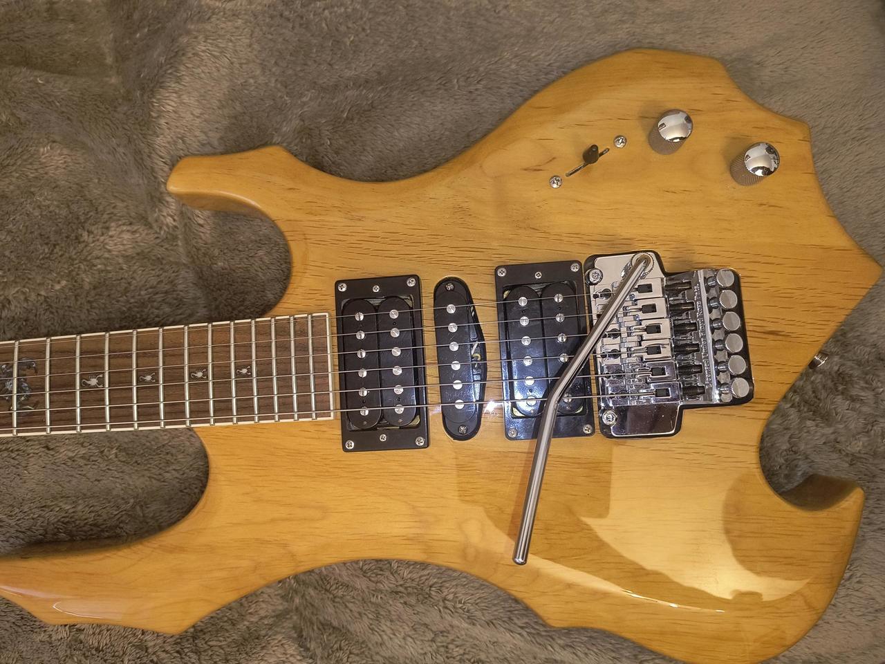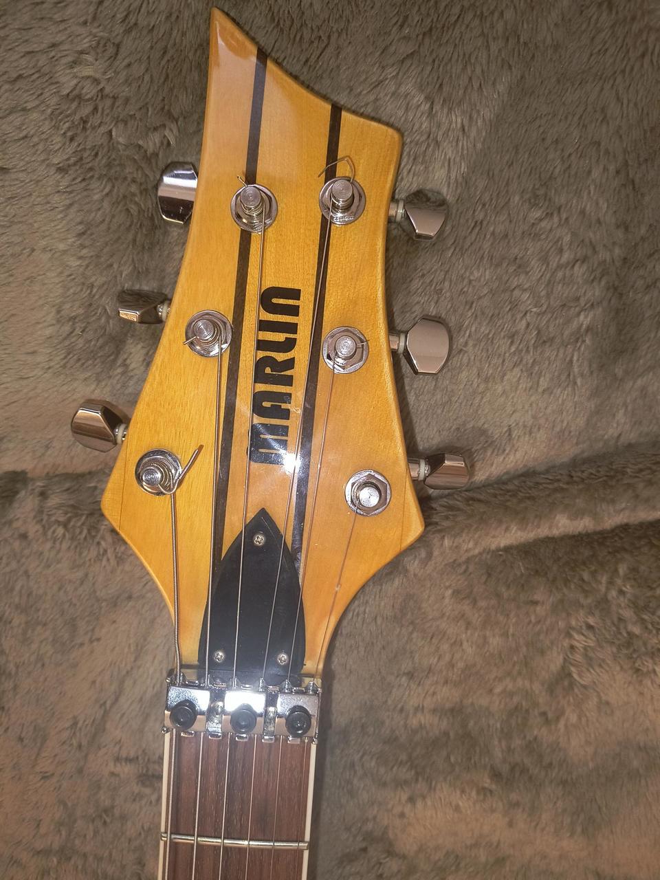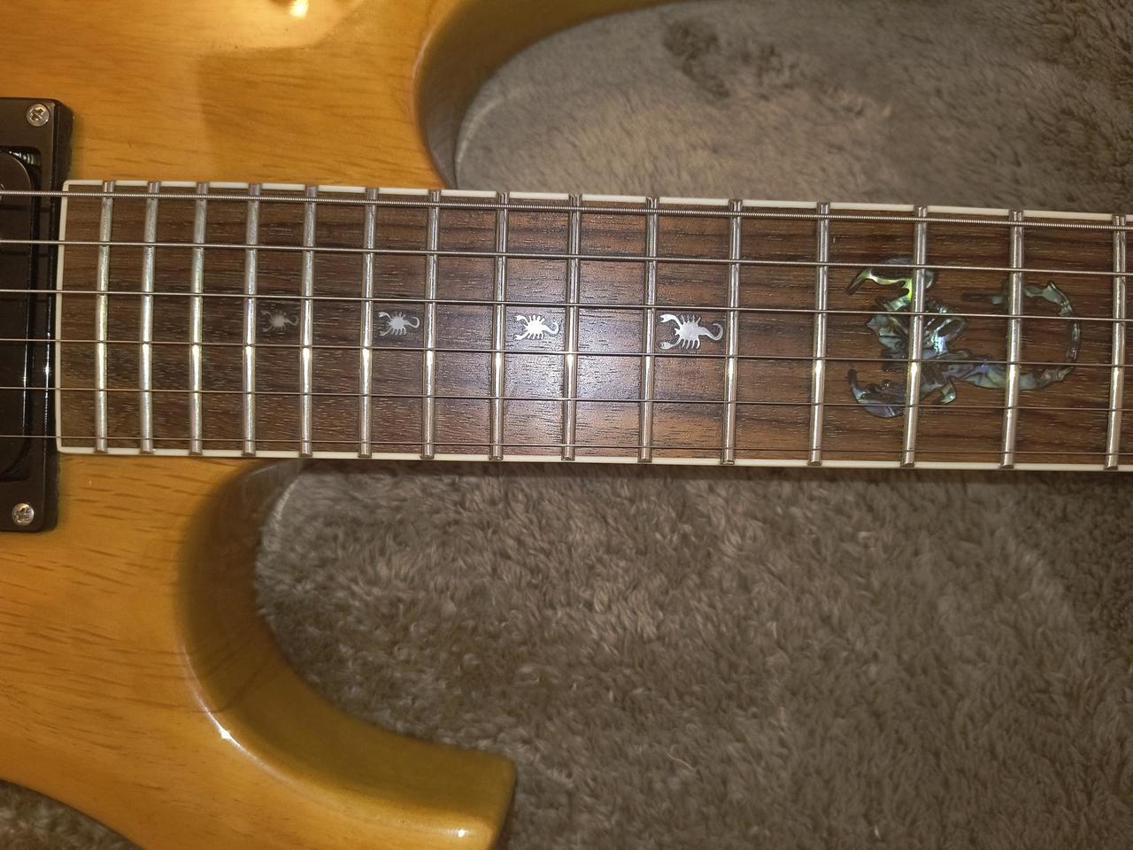 Co se týče hardware, tak původního není nic. Lepší ladicí mechaniky, jiná kobylka, snímače Tůma, control plate je taky jiný. Natažené struny elixír. Kytara má přijemně nízký dohmat, ladí v oktávách, drží naladěná.